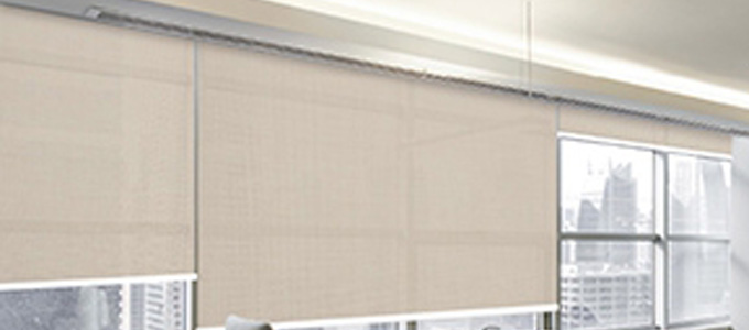 FTS天棚帘是种专为大面积采光顶而设置的织物遮阳装置。该电动遮阳系统在电子盒的控制下实现电机的正转和反转来收放面料以达到遮阳的目的。